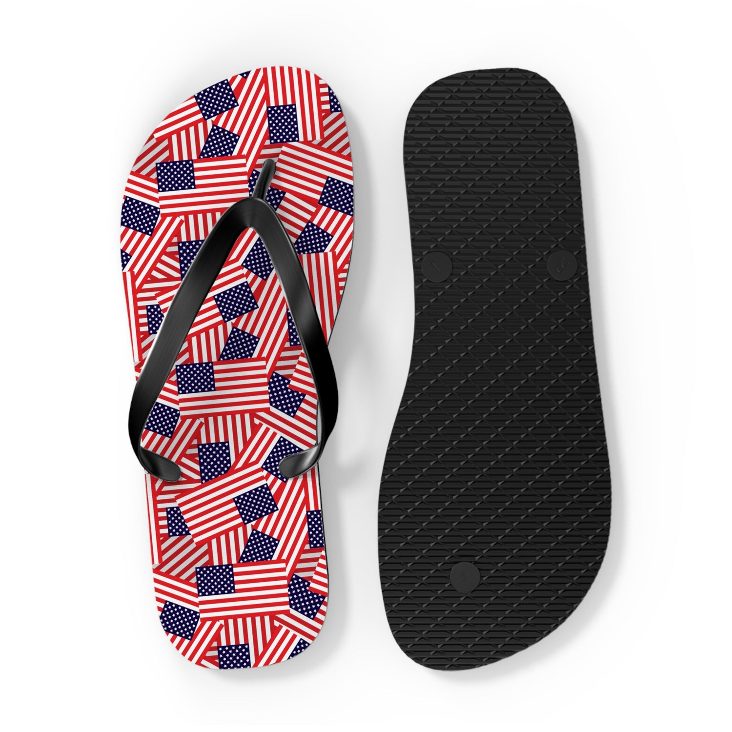 Show your stars and stripes in style with our Mini American Flag Flip Flops. Featuring a bold red, white, and blue flag-inspired pattern, these sandals are perfect for celebrating summer holidays, backyard BBQs, and beach days with a patriotic touch.